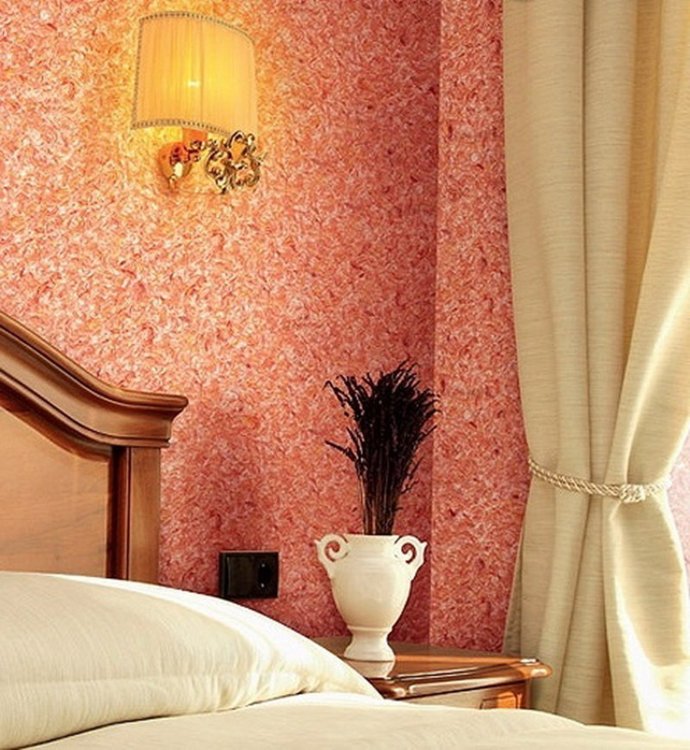 Жидкие обои-разновидность декоративной штукатурки для внутренних работ на основе текстильных волокон, клеевого компонетнта и различных декоративных элементов. 1 пакет-1 кг- расход 4,5 кв.м.